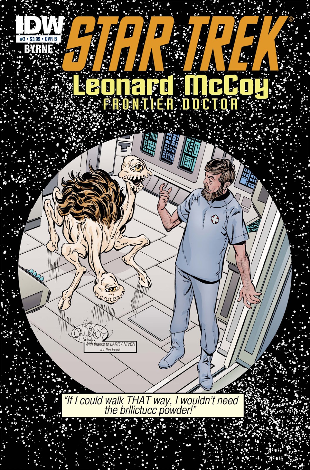 A nave-mãe Omniverso encontra-se numa missão para lá de especial: conduzir o querido doutor Leonard “Magro” McCoy aos mais distantes rincões do espaço, levando o melhor médico da Frota Estelar a quem precisa de cuidados médicos! Tal missão só poderia ser entregue aos cosmonautas ReginaldoJamerson e Dãozinho que, aproveitando a viagem, falaram um bocado sobre Star Trek: Leonard McCoy, Frontier Doctor, minissérie escrita e desenhada por John Byrne. Publicada em quatro partes pela IDW Publishing entre abril e julho de 2010, o material segue inédito no Brasil.